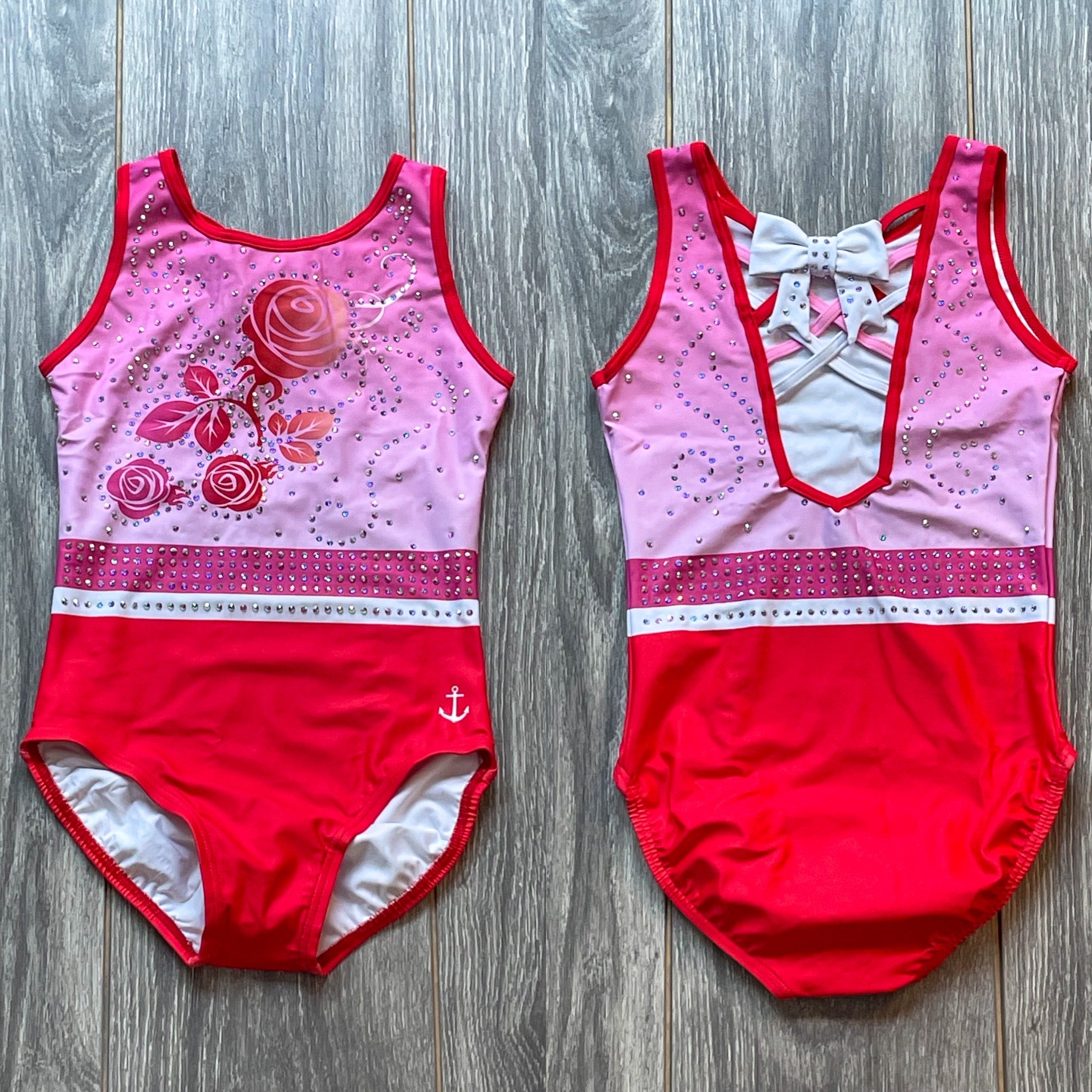 As a the season of love begins to emerge from the frost, A Regal Rose begins to sparkle and bloom. Soft lux fabric, in a striking bubblegum pink and red color, features an elegant rose design with rhinestone accents. A fun strappy back topped off with a bow. Fully Lined.